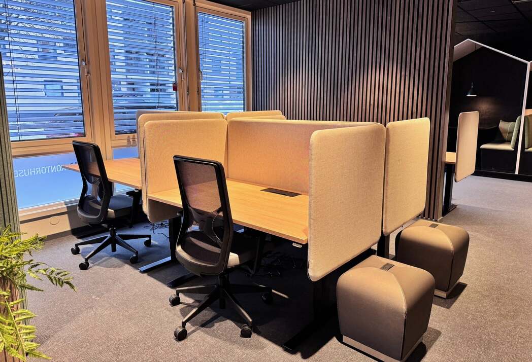 Ved å velge fast plass i åpent landskap får du din egen kontorplass, som kun disponeres av deg. Her kan du la PC-skjermen stå etter endt arbeidsdag. Du får også tilgang på et låsbart skap og stillerom.